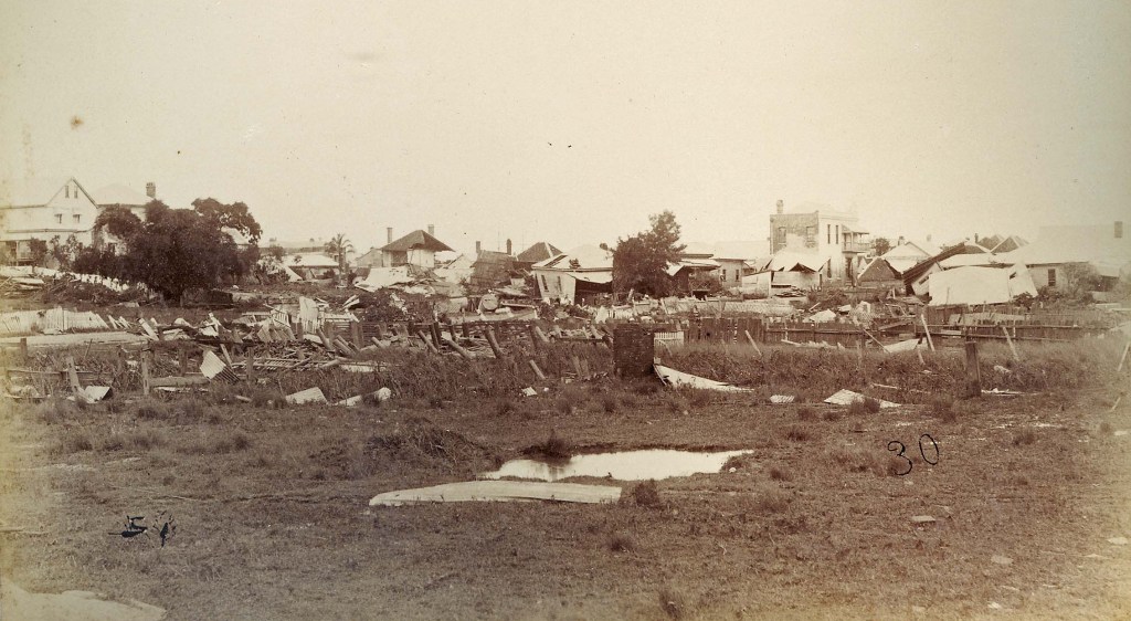 Destroyed buildings in Hope Street after the 1893 flood. (Fryer Library, University of Queensland)