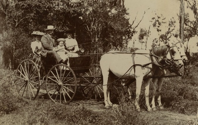 “long before the appointed hour for the first race, the clouds of dust shooting right up into the sky from Stanley and Grey Streets heralded the approach of the drags (horse-drawn vehicles) from the One-mile Swamp (Woolloongabba) and Kangaroo Point, as also from over Armstrong’s and Baxter’s ferries…. It was impossible to distinguish horses, carriages, or occupants— and your correspondent was in the thick of it.”