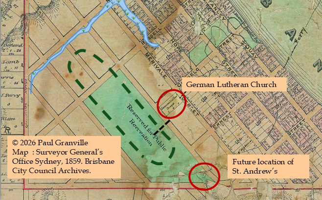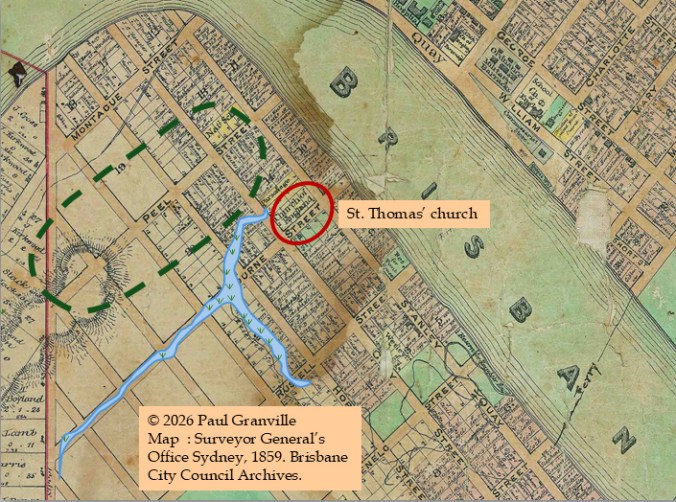 The English church mentioned was Saint Thomas’, located at the river end of Melbourne Street where the Art Gallery is now located.