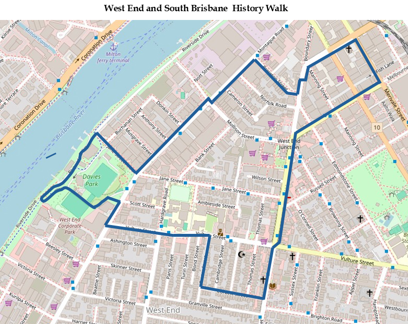 This walk traverses parts of South Brisbane and West End passing 30 heritage listed locations.